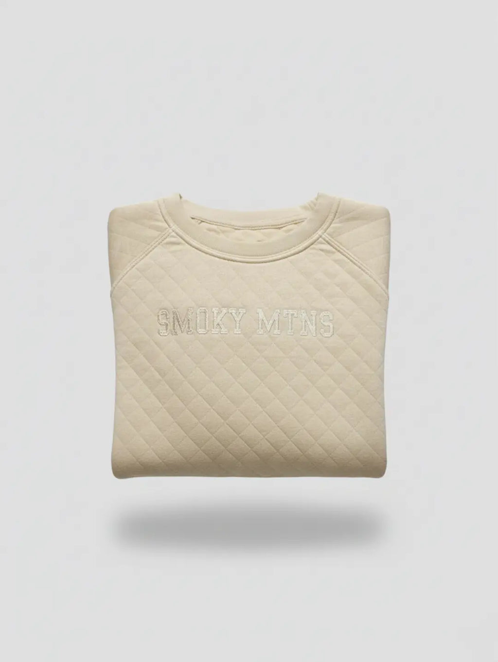 This men’s quilted Smoky MTNS sweatshirt features a textured diamond pattern with a soft, comfortable feel. Designed with raglan sleeves and ribbed cuffs for a relaxed fit, it’s ideal for everyday wear. The front graphic adds a casual, stylish touch suitable for any wardrobe.