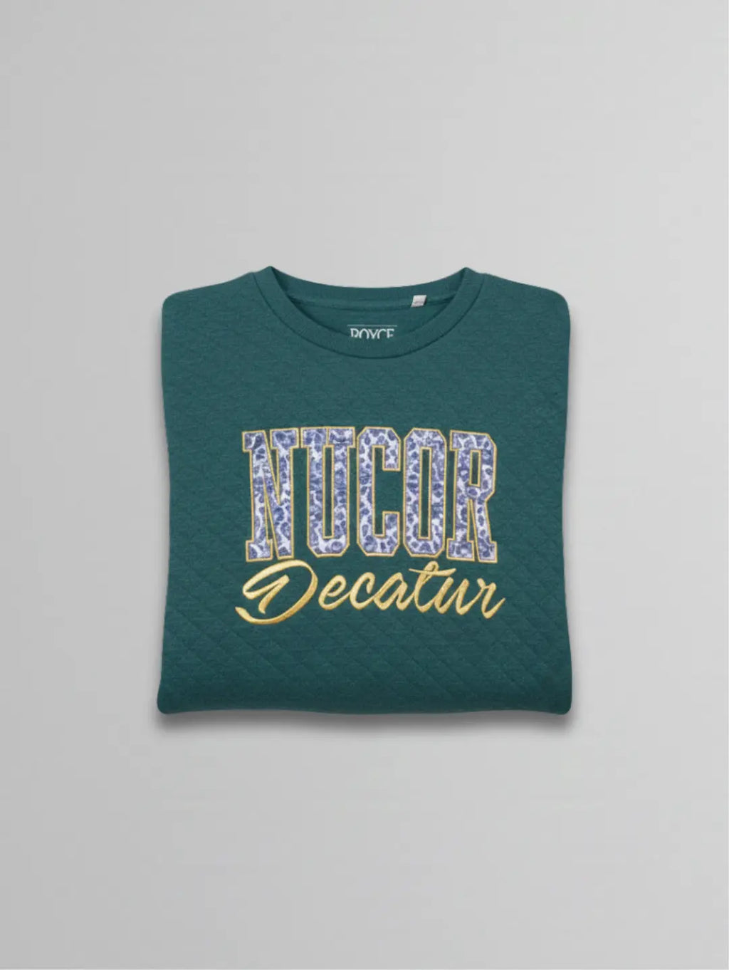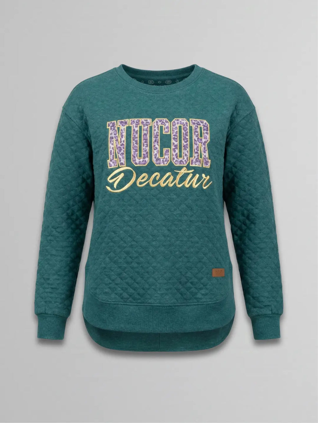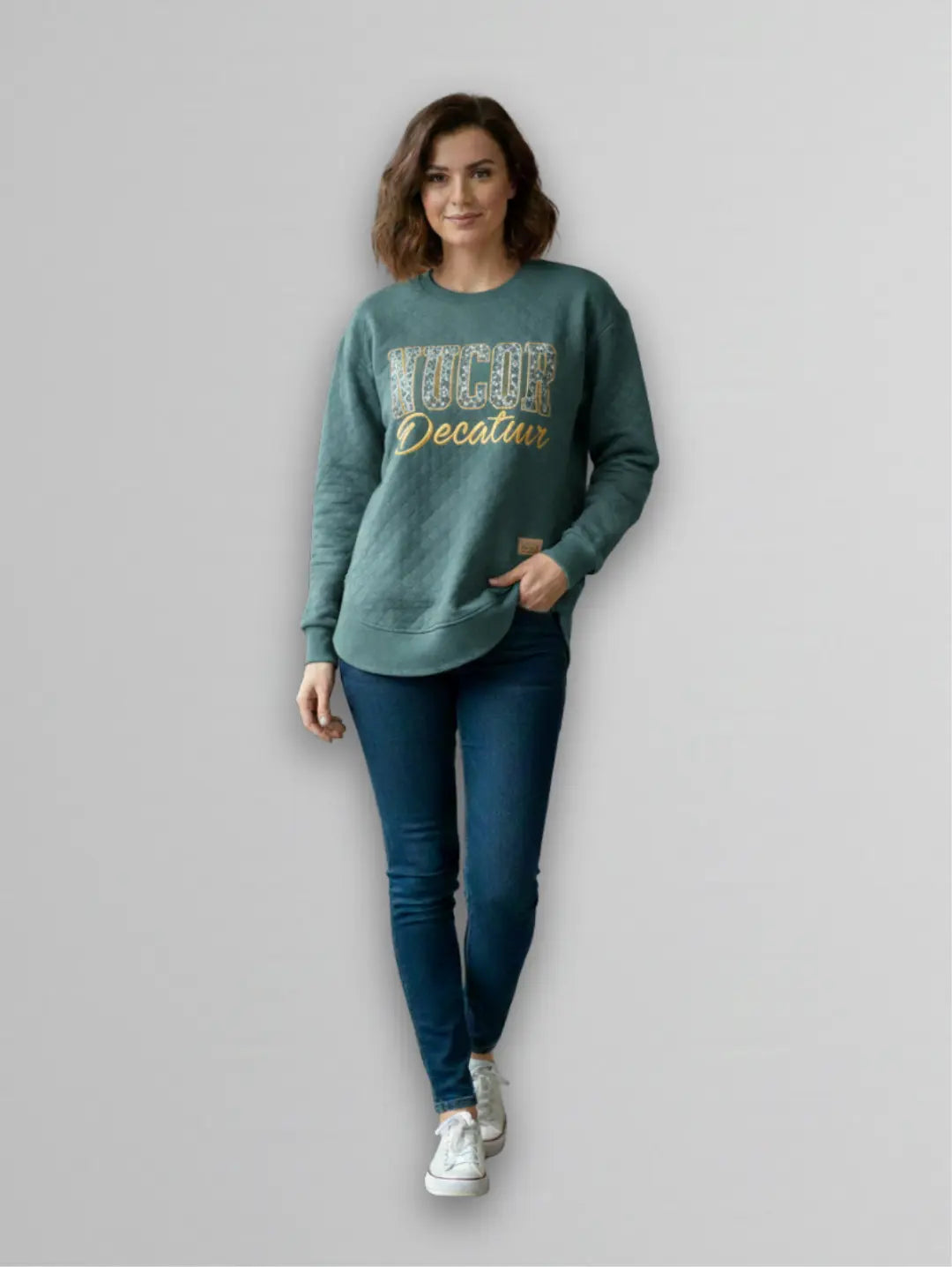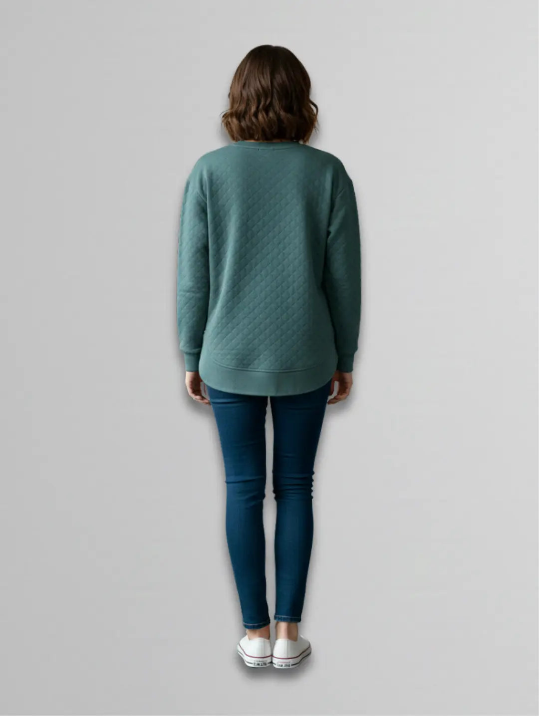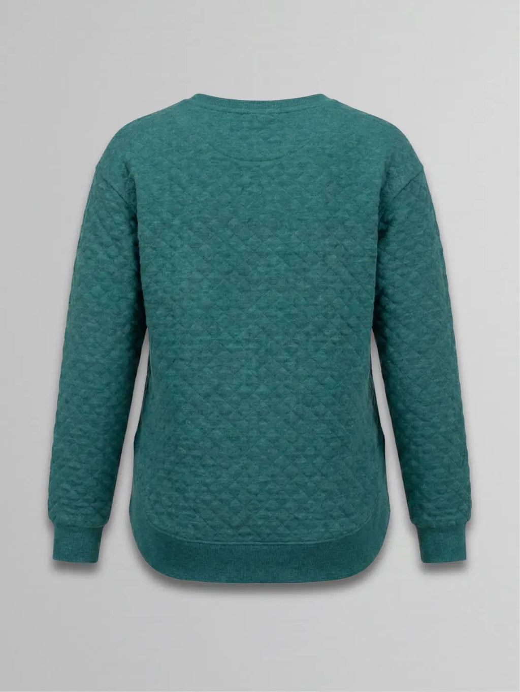 Women's sweatshirt with diagonal quilted pattern, this crewneck sweatshirt delivers both modern texture and essential warmth. Designed with comfortable raglan sleeves and durable ribbed trims at the cuffs and hem, it ensures a secure, relaxed fit. Finished with a premium leather patch detail, this textured pullover is an ideal choice for effortless everyday layering.