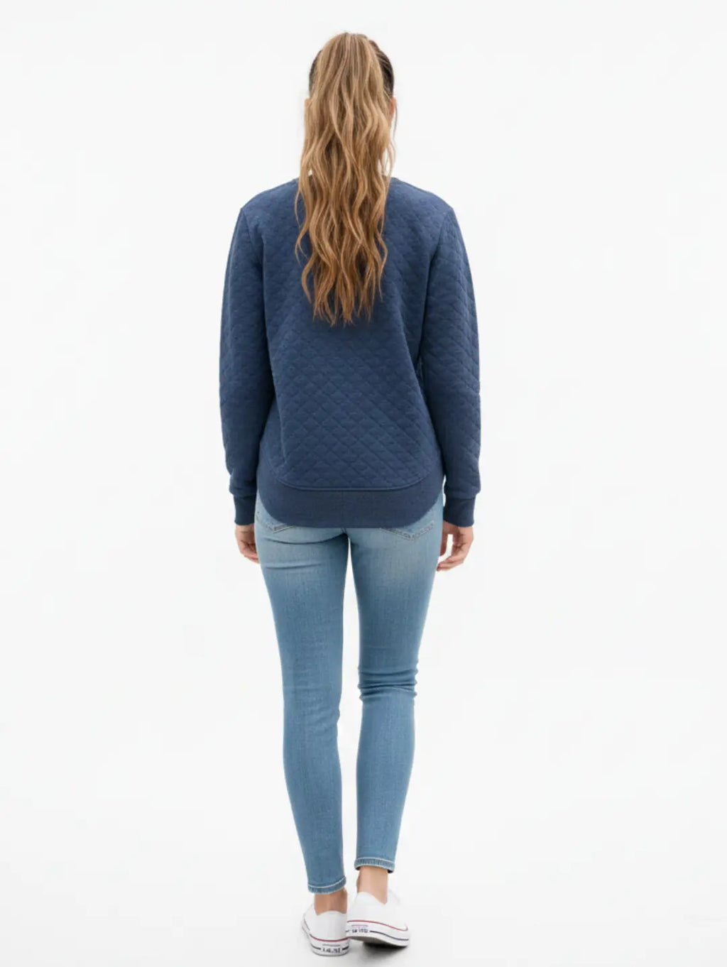 Women's sweatshirt with diagonal quilted pattern, this crewneck sweatshirt delivers both modern texture and essential warmth. Designed with comfortable raglan sleeves and durable ribbed trims at the cuffs and hem, it ensures a secure, relaxed fit. Finished with a premium leather patch detail, this textured pullover is an ideal choice for effortless everyday layering.